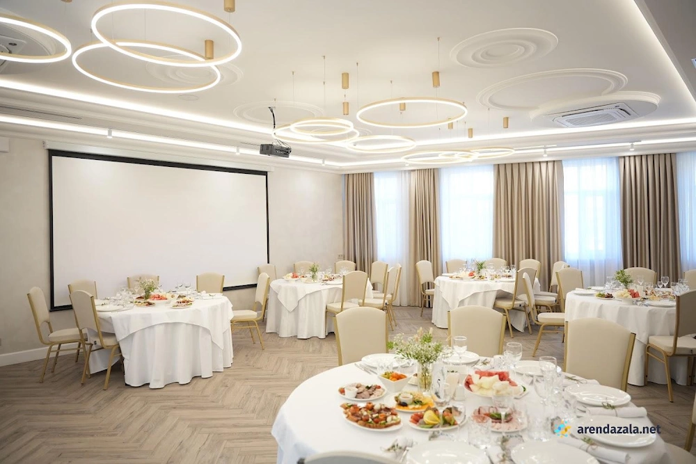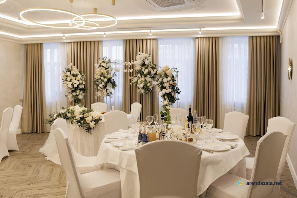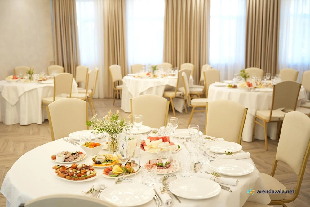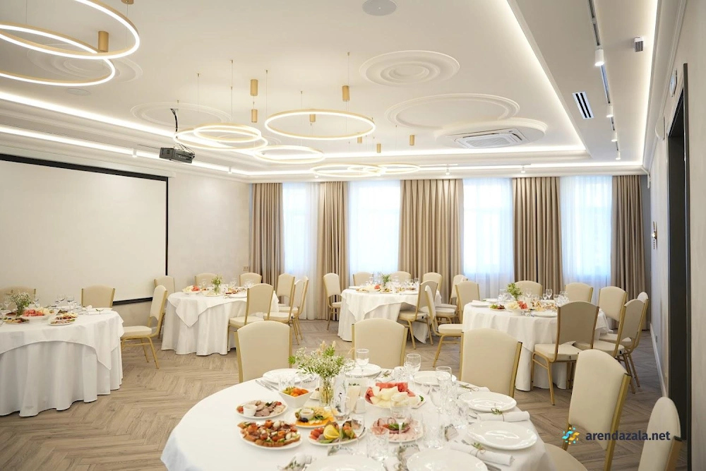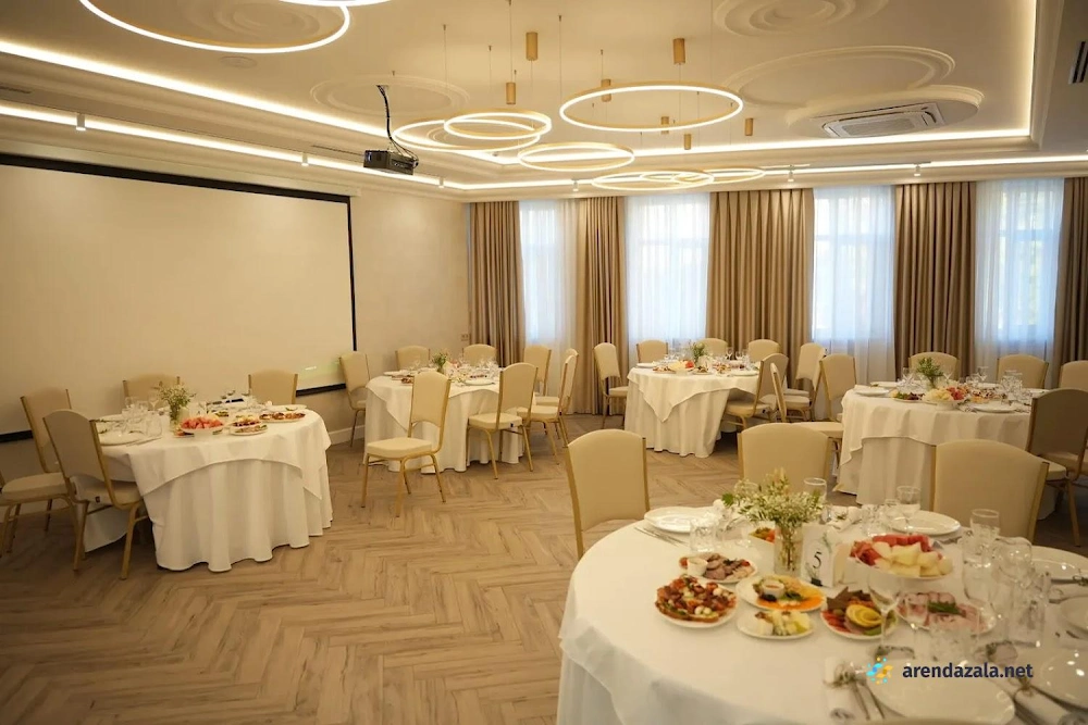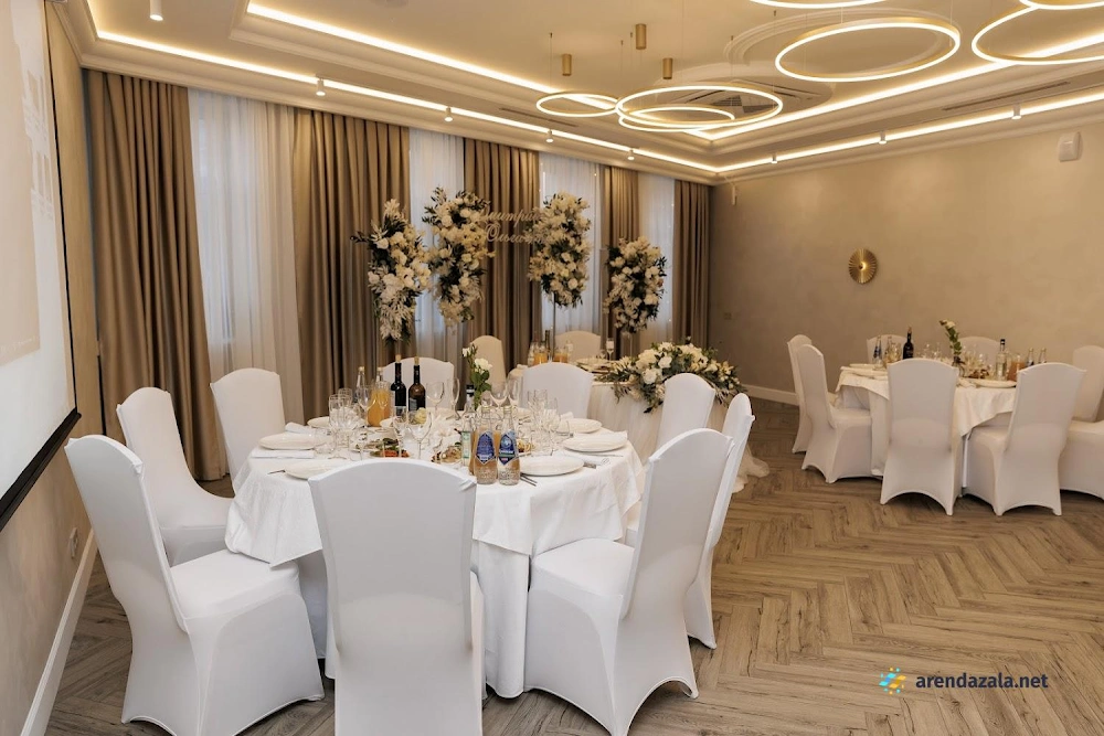 В уютном банкетном зале гостей ждет атмосфера радушного гостеприимства, просторные помещения с удобной входной зоной и раздевалкой. Внимательный и незаметный персонал обеспечит высокий уровень обслуживания, предложив вкусные блюда классической кухни, приготовленные по традиционным рецептам. Стильный интерьер, чистота и уют создадут ощущение комфорта и придадут любому торжественному событию особую изысканность.