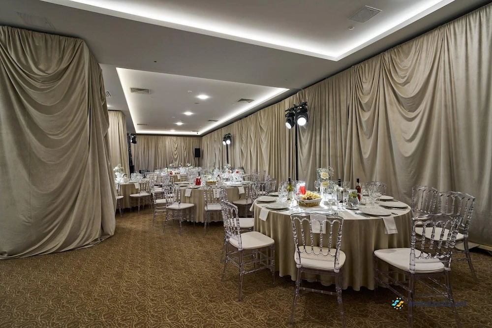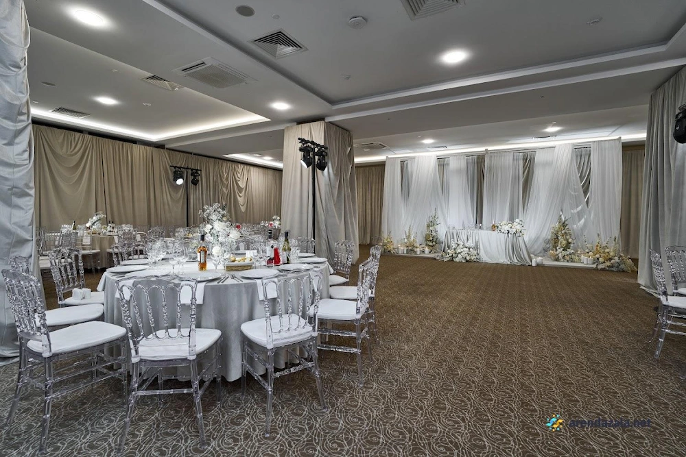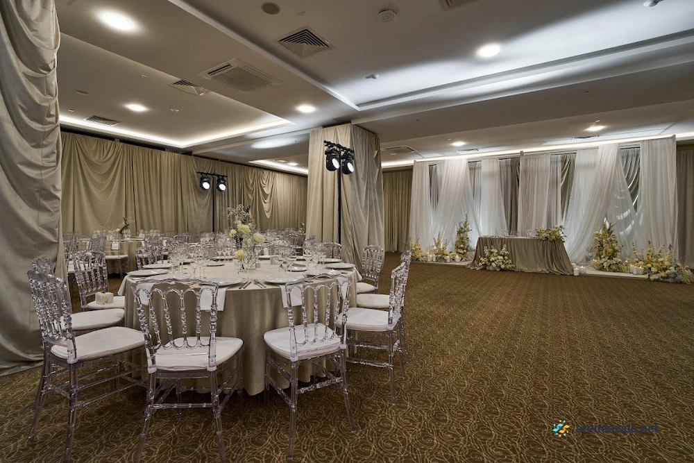 В уютном банкетном зале гостей ждет атмосфера радушного гостеприимства, просторные помещения с удобной входной зоной и раздевалкой. Внимательный и незаметный персонал обеспечит высокий уровень обслуживания, предложив вкусные блюда классической кухни, приготовленные по традиционным рецептам. Стильный интерьер, чистота и уют создадут ощущение комфорта и придадут любому торжественному событию особую изысканность.